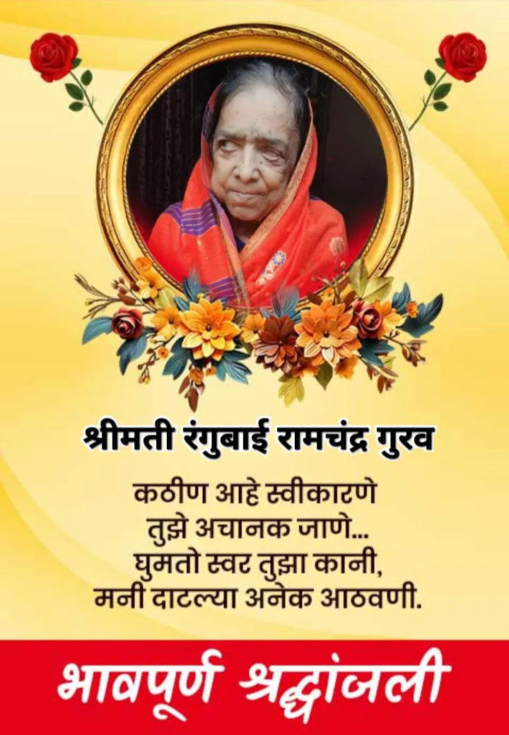 कै. रंगुबाई रामचंद्र गुरव (वय 92) यांचे वार्धक्याने आज शुक्रवार , दि. 16 जानेवारी रोजी पहाटे दुःखद निधन झाले. त्यांच्या जाण्याने गुरव कुटुंबावर शोककळा पसरली असून गावातून हळहळ व्यक्त केली जात आहे.
