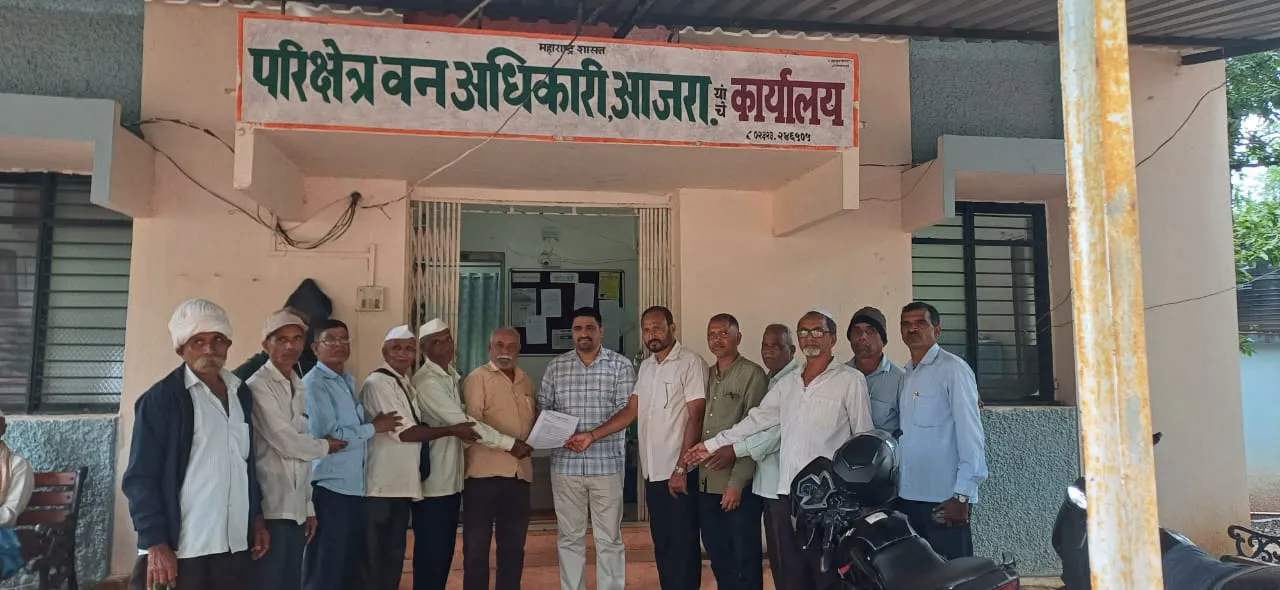 आजरा (हसन तकीलदार):- गेली वीस वर्षाहून अधिक काळ शेतकरी आणि वन्यप्राणी यांचा संघर्ष जीवघेणा बनला आहे. अनेक शेतकऱ्यांना वन्यप्राण्यांच्या हल्ल्यात आपले प्राण गमवावे लागले आहेत. कित्येकजण आयुष्यभराचे अधू आणि अपंग झाले आहेत. जंगली प्राणी शेतात घुसून पिकांची मोठ्याप्रमाणात नासधूस करीत आहेत.विविध मागण्यासाह वेळोवेळी निवेदने व चर्चा झाली आहे. परंतु यावर कोणतीही कार्यवाही झाली नसलेने 5ऑक्टोबर 2025पर्यंत मुख्य वन संरक्षक व उपवनसंरक्षक यांचेसोबत बैठक न झालेस सर्व शेतकऱ्यांना घेऊन मोर्चा काढणार असलेबाबतचे शेतकरी न्याय हक्क संघर्ष समितीने वनविभागास निवेदन दिले आहे