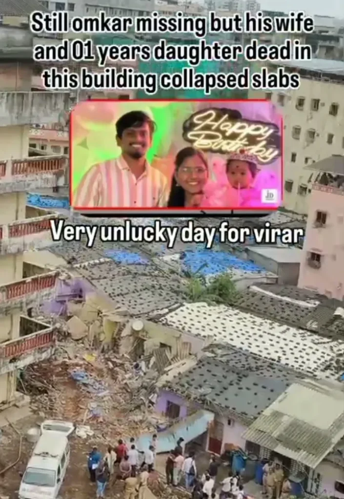 याचाच परिणाम आणि भीषण प्रत्यय २७ ऑगस्ट २०२५ च्या मध्यरात्री आला. विरार पूर्वेतील रमाबाई अपार्टमेंट या चार मजली अनधिकृत इमारतीचा काही भाग क्षणार्धात कोसळला. एका क्षणात आनंदाचे वातावरण शोकांतिका ठरलं. कारण या इमारतीत त्या रात्री एका बाळाच्या पहिल्या वाढदिवसाचा कार्यक्रम सुरू होता आणि त्याच कार्यक्रम दरम्यान इमारत कोसळून जीवितहानी झाली.
