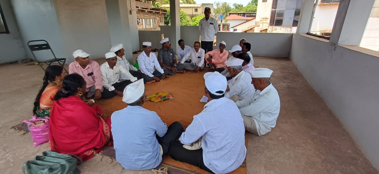 आज श्रमिक पतसंस्थेच्या माडीवर मेळाव्याचे नियोजन करण्यासाठी कॉ संपत देसाई यांचे अध्यक्षतेखाली बैठक झाली. सुरवातीला गौरोजी सुतार महाराज यांनी स्वागत आणि प्रास्तविक करून मेळावा का घेणार आहोत याची माहिती सांगितली. गेले वर्षभर आजरा तालुका वारकरी मंडळ तालुक्यात कार्यरत आहे. रामकृष्ण हरी वारकरी संप्रदाय संस्था स्थापन केली असून या संस्थेची पुढील दिशा ठरवण्यासाठी सोमवारी मेळावा होत आहे. तयारीसाठी तालुक्यातील सर्वच गावात वारकरी मंडळींच्या सभा बैठका झाल्या आहेत.
