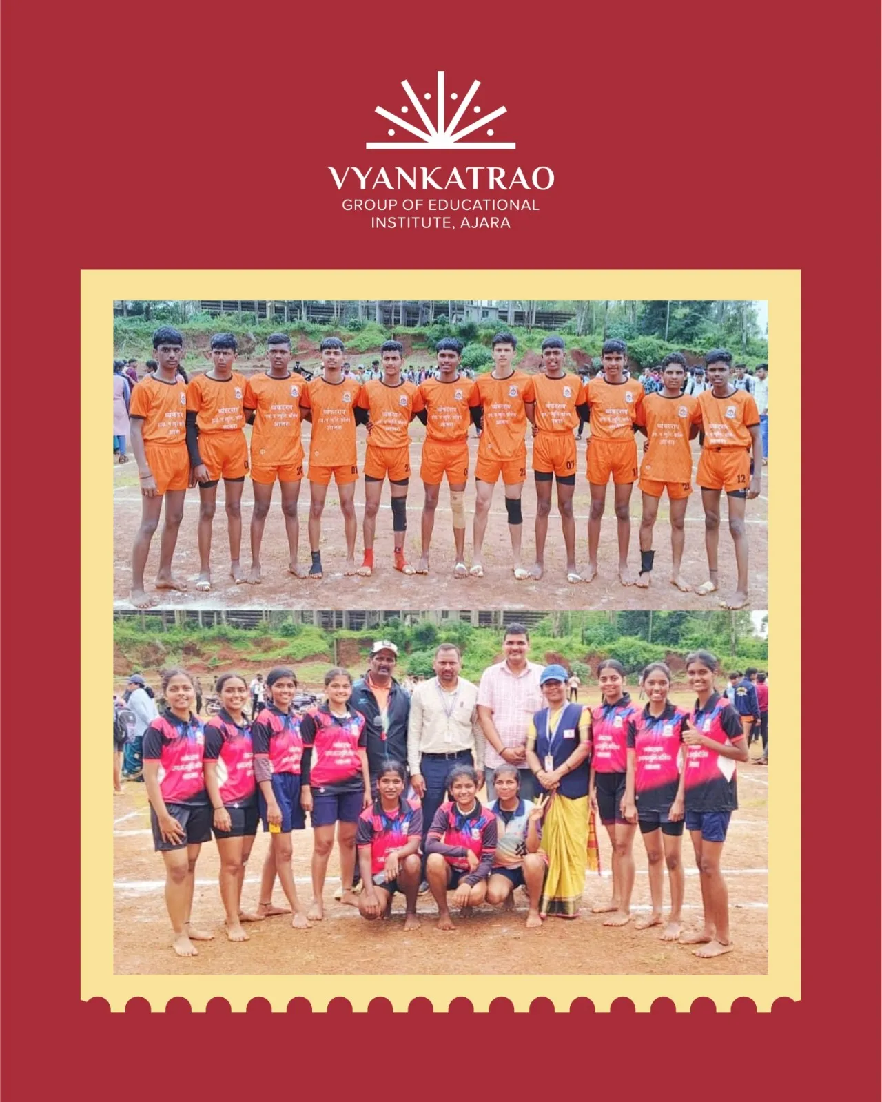 आजरा (हसन तकीलदार)जिल्हा परिषद शिक्षण विभाग कोल्हापूर आयोजित पंचायत समिती शिक्षण विभाग आजरा मार्फत तालुकास्तरीय कबड्डी स्पर्धा आजरा येथील क्रीडा संकुल येथे संपन्न झाल्या या स्पर्धेसाठी तालुक्यातून सतरा संघांनी सहभाग घेतला त्यामध्ये व्यंकटराव हायस्कूल व ज्युनिअर कॉलेज आजरा या प्रशालेतील मुलांनी व मुलींच्या संघानेही तालुक्यात प्रथम क्रमांक मिळवत उज्वल सुयश संपादन केले व कबड्डी या खेळ प्रकारात आपला दबदबा कायम ठेवला. या दोन्ही संघाची जिल्हास्तरीय कबड्डी स्पर्धेसाठी निवड झाली आहे.